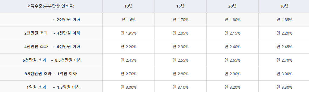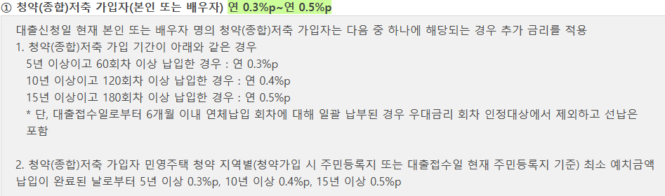 - 대출 접수일 기준 2년내 추가 출산한 자녀당 연 0.2%
